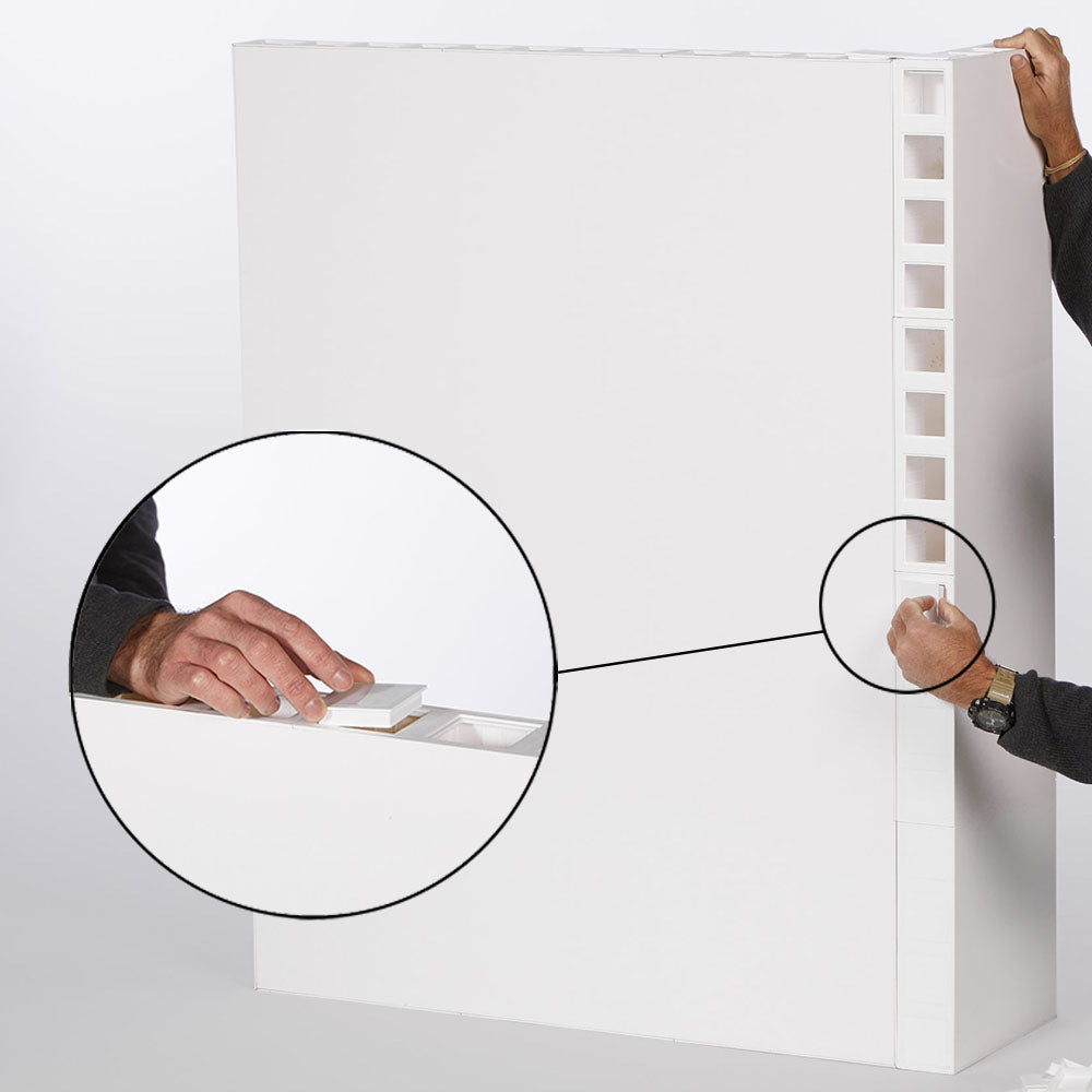 To give your wall a polished, clean appearance, the kit comes with finishing caps to seal off exposed connector holes. Note that for walls taller than 6', finishing caps for the top are not included. Extra caps can be purchased from our Accessories page.